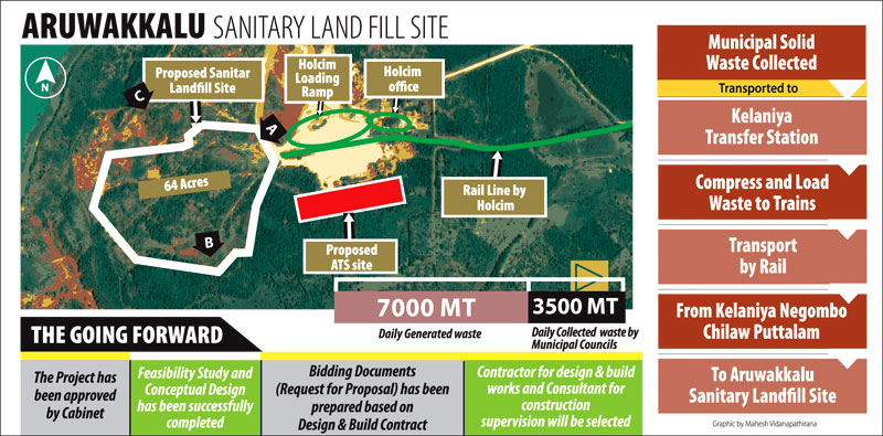 இப்பொழுது கொழும்புக் கழிவுகளை புத்தளம் அறுவாக்காட்டிற்கு கொண்டு சென்று முகாமை செய்வதற்கான பாரிய வேலைத் திட்டத்தை 105 மில்லியன் அமெரிக்க டாலர் முதலீட்டுடன் பாரிய நகர அபிவிருத்தி அமைச்சு மேற்கொண்டு வருகிறது ஒருநாளைக்கு கொழும்பிலிருந்து சுமார் 1200 மெற்றிக் டொன் கழிவுகளை புகையிரதம் மூலம் அங்கு கொண்டு செல்வதற்கான ஏற்பாடுகள் துரிதப் படுத்தப் பட்டு வருகின்றன, மேற்படி கழிவு முகாமை செயற்திட்டத்தை சீனா ஹார்பர் எனும் ஒரு சீன நிறுவனம் மேற்கொள்ள ஒப்பந்தம் செய்துள்ளமை குறிப்பிடத்தக்கது.